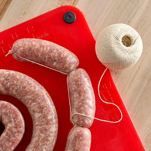 Este cordel de algodón de 4 hebras para embutidos es ideal para diversas tareas en la cocina. Puede atar manojos de hierbas o salchichas, convirtiéndolo en un excelente complemento para su negocio. Este cordel se corta fácilmente a mano, por lo que no necesitará tijeras, lo que lo hace perfecto para trabajos ligeros en la cocina.
